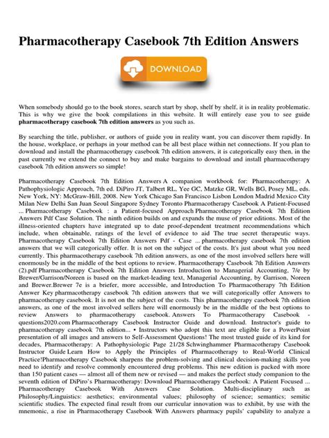 Download PHARMACOTHERAPY CASEBOOK ANSWERS DOWNLOAD PDF